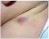Fig. 1.--Lesión nodular infiltrada de 2 cm en región deltoidea posterior izquierda.