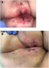Seven patients reported complete resolution of their ulcers within 8 weeks, on average, after discontinuing use of the ointment. One patient required skin grafts to achieve complete reepithelialization. In the others, the ulcers completely disappeared on applying local measures such as dressings, irrigations, and/or topical antibiotics. All patients were prescribed systemic or topical antibiotics, given the possibility of a superinfection. Patient 8 achieved nearly complete resolution. Patients 9 and 10 were lost to follow-up, and patient 11 is still being followed but is progressing toward a complete cure. The initial appearance of the perianal ulcers in the 11 cases and their respective outcomes are shown in Figs. 1–11. The most important characteristics are summarized in Table 2.