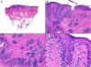 Histológicamente muestra/n un patrón trizonal: a) una proliferación melanocítica atípica en la unión dermoepidérmica con hiperplasia lentiginosa y nidos junturales confluyentes, con ocasional extensión pagetoide; b) un área significativa de esclerosis dérmica que contiene nidos irregulares de melanocitos atípicos, y c) un nevo residual por debajo de la cicatriz y en la vecindad de la misma, fundamentalmente de tipo congénito1. La escasa atipia citológica en ausencia de mitosis, necrosis (celular) y de nódulos de expansión dérmica, permiten diferenciarlo de un melanoma en regresión. Además, el NERP suele presentar un patrón de fibrosis «ordenada», con haces de colágeno eosinófilos, homogéneos, dispuestos de forma paralela entre sí y en relación a la epidermis. Por el contrario, el melanoma en regresión se caracteriza por una fibrosis, a menudo, más «pálida» (quizá por edema) y haces de colágeno más irregulares, además de melanófagos. Los criterios diagnósticos de Fabrizi et al., probablemente permitan diferenciar un NERP de un melanoma en regresión. Sin embargo, la atipia a nivel juntural con extensión pagetoide convierten el diagnóstico de esta entidad en una cuestión de «presencia cuantitativa de criterios morfológicos», por lo que cabe esperar cierto grado de variabilidad interobservador entre patólogos3.
