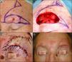 Case DescriptionsCase 1The patient was an 85-year-old woman with an indurated, lobulated plaque measuring about 12mm in diameter in the area of the tail of the left eyebrow (Fig. 1A). Under local anesthesia plus sedation, the lesion was excised with a surgical resection margin and deep dissection down to the level of the muscle, triangulating the defect superiorly. A left lateral advancement flap with a tension-releasing triangle in the inferior preauricular area was designed to cover the defect created (Fig. 1B); the flap was sutured with 3/0 polyglycolic acid and silk sutures (Fig. 1C). The pathology report described a moderately differentiated squamous cell carcinoma. At the time of removal of the sutures, the scar presented a good appearance, and the eyebrows were seen to be symmetrical (Fig. 1D).