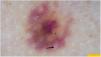 Una mujer de 43 años, sin antecedentes personales ni familiares de interés, fue derivada por su médico de atención primaria por una lesión violácea pruriginosa en tronco posterior de 2 semanas de evolución, con la sospecha de melanoma. La paciente refirió haber observado un sangrado espontáneo de la lesión.