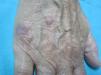 Mujer de 70 años de edad, sin antecedentes de interés, que consultaba por dos lesiones en el dorso de la mano derecha, de 6 meses de evolución. Estas lesiones eran asintomáticas y presentaban un crecimiento lento y paulatino.