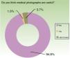 The most interesting finding relating to religion was the response of 2 Muslim women with appointments at the dermatology department. The women were around 30 years of age, married, with children. While they made clear their distrust of photography in general, they nonetheless recognized the diagnostic value of medical photography and stressed that it should be a female doctor who took the photographs. They also insisted on the strict medical use of the images. The Muslim religion prohibits representations of the divine and the human.5