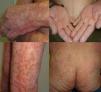 We present the case of a 67-year-old man with a history of myocardial infarction and cerebellar stroke, diagnosed 3 months earlier with metastatic adenocarcinoma of the lung with PD-L1 expression in more than 5% of tumor cells, measured immunohistochemically. The patient was referred to dermatology for evaluation and treatment of his psoriasis before entering a clinical trial investigating pembrolizumab for his lung neoplasm. The patient had psoriasis affecting the elbows, knees, and buttocks; the disease was stable on topical treatments, with a psoriasis area severity index (PASI) score of 3 and body surface area (BSA) involvement of 5%. The psoriasis deteriorated progressively after the first cycle of pembrolizumab, with a PASI score of 22 and BSA of 60%; after the second infusion, the severity became almost compatible with erythrodermic psoriasis, with a BSA of 81% and a PASI score of 33 (Fig. 1). Treatment was started with acitretin at a dose of 25mg/d. This had to be increased to 35mg/d after the deterioration seen during the second cycle. The tumor response to pembrolizumab was excellent after the second infusion of the drug, as was the improvement of his psoriasis with acitretin after 6 weeks of treatment. It was therefore decided to continue treatment with both drugs. There have been no further outbreaks of psoriasis during the following 3 infusion cycles. Three months after the initial outbreak, the patient had a PASI score of 4 (Fig. 2), which allowed us to reduce the dose of acitretin to 20mg/d.