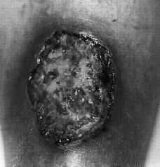 FIG.1.--Úlcera de bordes socavados y fondo necrótico en pierna.