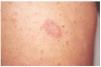Fig. 2.--Placa ovalada eritematosa con un borde descamativo en el muslo.
