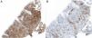 HistopatologíaSe observaba una epidermis con ligera acantosis, espongiosis y exocitosis en ausencia de cambios citopáticos. En el epitelio folicular habían focos de degeneración vacuolar y aislados queratinocitos apoptóticos. En dermis se apreciaba un denso infiltrado linfo-plasmocitario con presencia de granulomas no caseificantes (figs. 1B-D). Las tinciones histoquímicas no mostraban gérmenes. El infiltrado linfoide era de predominio CD3 (figs. 2A y B), con presencia de células CD30+, sin restricción de cadenas ligeras. La inmunohistoquímica para el virus del herpes simple (VHS) 1 y 2 fue negativa. La PCR para el VHS del exudado resultó negativa, pero positiva para VHS-1 en la biopsia.