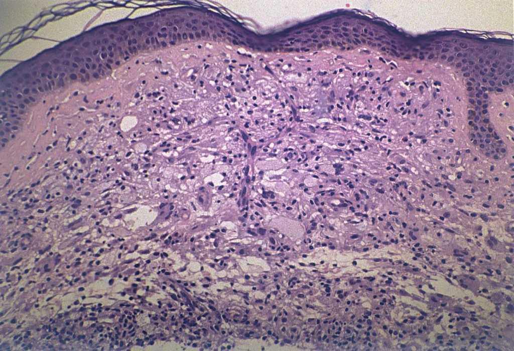 El hemograma y la bioquímica, incluyendo los niveles de colesterol y triglicéridos, fueron normales. Se realizó biopsia cutánea de una de las lesiones de la espalda (fig. 3).