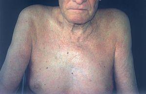 Durante los controles periódicos realizados a lo largo de 2 años, el componente monoclonal ha permanecido estable, pero las lesiones cutáneas siguen extendiéndose.