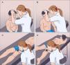 Paciente en sedestación sobre la camilla: si el paciente es de estatura elevada, en este paso podemos explorar las lesiones a nivel facial, ya que se encontrará en nuestra línea de visión y podemos realizar la exploración de una forma cómoda (A). Aprovechamos a realizar una exploración completa del cuero cabelludo y los pabellones auriculares (fig. 3B).