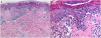 A punch biopsy of an abdominal papule was obtained and histopathological examination revealed hydropic degeneration of the basal cell layer, pityriasiform spongiosis, lymphocyte exocytosis, and isolated apoptotic keratinocytes. The corneal layer showed parakeratosis and neutrophiles (Fig. 2).