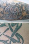 | Varón | 23 | 2 días | Pierna dcha | Pápulo-pustulosa | Homogénea | Negra | Sí | Dermatitis de interfase liquenoide | Sí, negativo | Sí | Reacción inflamatoria por lote de tinta contaminada por Pseudomonas aeruginosa |