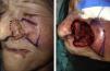 En el diseño debe ajustarse la isla cutánea al tamaño del defecto. El ancho debe ser igual al tamaño horizontal de la zona a reconstruir. La longitud deberá ser al menos el doble del defecto para abarcar la reconstrucción mucosa y cutánea. El tallado del pedículo debe realizarse a 2-3mm en la profundidad del tejido celular subcutáneo. Los 3/4 distales del pedículo deben ser liberados del tejido subyacente, manteniendo como anclaje solo 1/42. El exceso de tejido graso de la isla debe retirarse para mejorar el resultado estético3. Es recomendable realizar profilaxis antibiótica tanto intraoperatoria como postoperatoria en estos pacientes4.