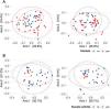 Beta diversity based on principal coordinates analysis (PCoA). (A) Beta diversity according to the presence (red) or absence (blue) of psoriasis. No clustering according to psoriasis diagnosis is observed. (B) Beta diversity according to the presence of psoriatic arthritis. No segregation of cases is observed according to this variable.