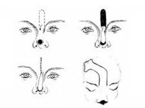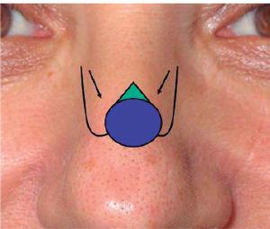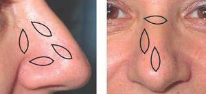 Figura 1. Guía para la extirpación directa en la pirámide nasal.