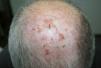 Erosive pustular dermatoses are rare inflammatory skin diseases of unknown origin that typically arise either on the legs or on the scalp. Erosive pustular dermatosis of the scalp mainly affects older patients. It is characterized by confluent sterile pustules, erosions, and scabs on the scalp that heal with scarring alopecia. Factors such as local trauma, cryotherapy, and radiotherapy1 can trigger or worsen this condition. The differential diagnosis includes bacterial folliculitis, inflammatory tinea, blistering diseases such as cicatricial pemphigoid, dissecting cellulitis, and pyoderma gangrenosum.1,2 Treatment is complex and the disease tends to recur. Medium- to high-potency topical corticosteroids have been used successfully, sometimes in conjunction with a topical antibiotic. Topical tacrolimus can also be effective3 and prevents the adverse effects of long-term topical corticosteroid therapy. Other treatments include oral corticosteroids, dapsone, oral retinoids (isotretinoin), and topical calcipotriol. In our patient, treatment of actinic keratoses with cryotherapy probably worsened the erosive pustular dermatosis of the scalp, and cryotherapy was therefore avoided after this second diagnosis was made.