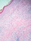 Fig. 3.--Dermis ocupada por un denso infiltrado de linfocitos y células gigantes, que se tiñen con PAS. (PAS, x10.)