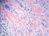 Se le practicó una biopsia en la que la epidermis se encontraba respetada mientras que la dermis estaba ocupada por un denso infiltrado compuesto por linfocitos, histiocitos mononucleares y células gigantes multinucleadas. Estas células eran PAS positivas y presentaban un citoplasma finamente granular que recordaba a la imagen en vidrio esmerilado; algunas tenían vacuolas lipídicas intracitoplasmáticas (figs. 3 y 4).