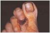 Fig 2.--Lesión ulcerosa en el dorso del segundo dedo del pie derecho.