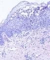 Presentamos el caso de una niña nacida a término con fenotipo Down y un exantema vesiculopustuloso de predominio facial, con lesiones distribuidas de forma irregular sobre la cara, el cuero cabelludo y el tronco (fig. 1). No se realizó ningún control del embarazo hasta la segunda mitad del mismo, observándose entonces en la ecografía anomalías cardiacas leves. El síndrome de Down se confirmó mediante cariotipo en la primera semana de vida. En la analítica realizada el primer día de vida se encontró: hemoglobina de 22,7g/dl, 46.000 plaquetas/μl y 49.000 leucocitos/μl con 28% de blastos en sangre. Los cultivos para bacterias, hongos y virus fueron negativos. En el frotis de una de las pústulas se observaron elementos granulocíticos maduros, intermedios y algún blasto. La médula ósea no presentaba signos de leucemia. En la biopsia cutánea se encontró una vesiculopústula subcórnea, repleta de leucocitos polimorfonucleares, con presencia de exocitosis epidérmica de dichos elementos (fig. 2). Tanto las alteraciones hematológicas como las lesiones cutáneas se resolvieron espontáneamente en las primeras semanas de vida.