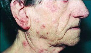 FIG. 1.--Pápulas y placas eritematosas en cara y cuello.