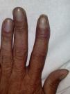 A continuación, se presenta de un varón de 49 años, sin antecedentes personales de interés, fumador (80 cigarrillos/día) y con un hábito enólico importante (60g/día). Consultó de urgencia por una cianosis de aparición súbita en los 3 primeros dedos de la mano izquierda, precedido de palidez cutánea, acompañado de parestesias y dolor intenso (fig. 1). No presentaba otra sintomatología indicativa de enfermedad sistémica y la exploración física era por lo demás normal. La auscultación cardiaca era rítmica y sin soplos, y los pulsos distales estaban presentes y eran simétricos en todas las extremidades. El estudio de coagulación fue normal, salvo el dímero-D, que fue mayor de 5.000ng/ml, con un tiempo de cefalina y protrombina normales. Se realizó un eco-Doppler arterial que evidenció presencia de vascularización hasta la región interdigital de todos los dedos de la mano afectada. La arteriografía puso de manifiesto una oclusión distal de la arteria radial del segundo dedo, con oclusión proximal de las arterias digitales palmares de los dedos segundo y tercero. La radiografía de tórax objetivó una masa de 4 cm en el lóbulo inferior derecho (fig. 2), cuya punción-aspiración con aguja fina fue compatible con un carcinoma de pulmón de células gigantes. El estudio de extensión no evidenció afectación ganglionar. El tratamiento inicialmente pautado fue heparina de bajo peso molecular, con mejoría leve de la sintomatología cutánea. Por ello se añadió de forma secuencial pentoxifilina, ácido acetil-salicílico y alprostadilo por vía intravenosa con resultados discretos. Tras la resección tumoral, presentó una evidente mejoría clínica, con resolución del fenómeno de Raynaud.