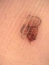A la inspección podía comprobarse que se trataba de una mácula de color marrón claro, no uniforme, de 3mm de diámetro. A simple vista, la naturaleza de la lesión no era claramente identificable (fig. 1).
