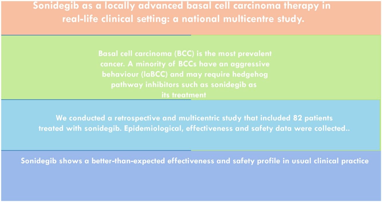 ConclusiónSonidegib muestra un perfil de eficacia y seguridad mejor de lo esperado en la práctica clínica habitual.