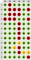 Summary of the reviewers’ assessments for each domain of bias risk. Risk of bias. SB (selection bias); PB (performance bias); DB (detection bias); AB (attrition bias); RB (reporting bias); OB (other bias). Studies: (S1) Pellacani et al., 2023; (S2) Auriemma et al., 2015; (S3) Miura et al., 2015; (S4) Pérez-Sánchez et al., 2014; (S5) Chen et al., 2015; (S6) Chen et al., 2016; (S7) Allen et al., 2023; (S8) Freitas et al., 2015; (S9) Pasarelli et al., 2014; (S10) Pilkington et al., 2016; (S11) Donnenfeld et al., 2014; (S12) Nobile et al., 2016.