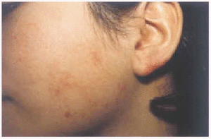 Fig. 1.--Lesiones telangiectásicas de 3 años de evolución.