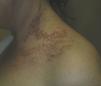 Durante un año de seguimiento las lesiones del cuello no han recidivado, ni siquiera en verano, persistiendo, aunque en menor medida, lesiones en la región lumbar y frontal que la paciente controla con ciclos de tazaroteno tópico. La paciente no ha referido irritación en ningún momento del tratamiento.