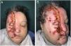 A 58-year-old woman was referred with a 20-month history of multiple ulcers on the right side of her face and scalp associated with dysesthesias, along with itching that led to compulsive scratching. Two years earlier, she had experienced an ischemic stroke in the territory of the right posterior inferior cerebellar artery. The examination revealed an extensive crescent-shaped ulcer, with involvement of the right cheek, inner corner of the right eye, and right medial frontal area associated with partial destruction of the right nasal wing and superficial erosions on the right upper and lower lips (Fig. 1a). Notable was a marked inflammation of the right upper eyelid, preventing eye opening, and a 7cm×5cm ulcer in the right frontoparietal region of the scalp with secondary alopecia (Fig. 1b). Neurological examination revealed the presence of anesthesia in the right trigeminal nerve region. Ophthalmological examination revealed ptosis, enophthalmos, and miosis. The skin biopsy was nonspecific, and magnetic resonance imaging showed reactive changes in the soft tissues of the right upper eyelid. A diagnosis of trigeminal trophic syndrome (TTS) was achieved, with Claude–Bernard–Horner syndrome due to ischemic stroke. The patient was treated with occlusive dressings and oral carbamazepine, with significant lesion improvement.