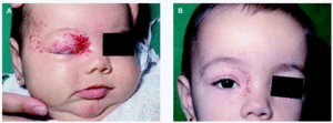 Una vez finalizado el tratamiento con corticoides, los resultados obtenidos fueron satisfactorios, con disminución en el tamaño de los hemangiomas en todos los pacientes (figs. 1A y B). En los casos de afectación ocular, se logró apertura palpebral con recuperación de la visión y sin secuelas posteriores, mientras que en el caso de los hemangiomas hepáticos, se pudo constatar su regresión mediante técnicas de imagen.