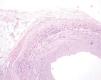 En el estudio histológico de la arteria se observó una pared engrosada con un moderado infiltrado inflamatorio crónico compuesto por linfocitos, histiocitos, algún eosinófilo, y focalmente alguna imagen sugestiva de células gigantes, localizado en las capas media y adventicia (fig. 1).