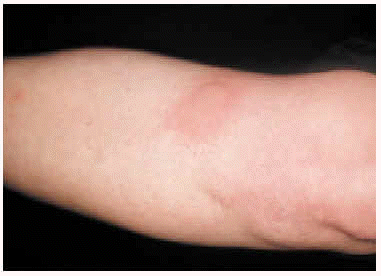 Fig. 2.--Caso 2: lesiones urticariales tras provocación con la luz del sol.