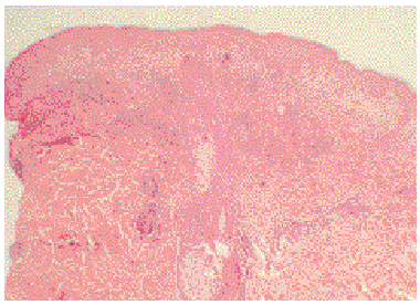 Fig. 4.--Caso 4: edema en dermis superficial e infiltrados perivasculares superficiales.