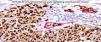 HMB45Human Melanoma Black-45 (HMB-45) is a mouse monoclonal antibody that recognizes gp100 or Pmel17, a premelanosome protein,28,29 which makes HMB45 very specific marker for melanocytic proliferations. Expression of HMB45 is directly proportional to melanin synthesizing capacity of the cells; therefore, melanocytes of blue nevi and some Spitz nevi exhibit uniform staining throughout the lesion,30 whereas the maturing dermal melanocytes of banal compound and intradermal nevi progressively lose their HMB45 expression.12,31 Most of the primary epithelioid melanomas, on the other hand are typically characterized by patchy expression of HMB45, while a majority of the desmoplastic melanomas tend to be negative for HMB45.32,33 As such, diffuse expression through the lesion or limited to the intra- and periepithelial melanocytes is usually associated with a diagnosis of nevus while patchy expression is more likely to be seen in melanomas.