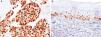 Markers of melanocytic differentiationS100BSince its expression in melanoma cell lines was documented 35 years ago, S100B, also referred to as just ‘S100’, is the most analyzed marker of melanocytic differentiation.18–21 It is a member of the S100 family of calcium binding heteromeric proteins that is expressed in a variety of tissues including melanocytes.22 In addition to being expressed intracellularly, and thus, being detectable by IHC, S100 is also secreted in the serum.23 The sensitivity of S100 in melanomas is very high in formalin-fixed tissues and thus, more than 90% of all primary melanomas, including desmoplastic variants, express S100 protein.24,25 However, its expression may be lost in metastases as well as in some spindle cell/desmoplastic melanomas.26,27 Also, since the specificity of S100 is not high, it is advisable to use it in conjunction with other melanocytic markers. Regarding tissue processing, S100 protein is soluble in organic solvents such as acetone and alcohol. Therefore, frozen tissue sections and cytology preparations utilizing alcohol based fixatives are likely to yield false negative results and are not recommended for S100 IHC.
