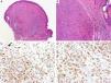 Diaminobenzidine (DAB) is the most commonly used chromogen, which produces a brown precipitate. However, in heavily pigmented lesions, distinguishing the immunoreaction from melanin pigment can be challenging; therefore, other chromogens may be used including fast red or 3-amino-9-ethylcarbazole (AEC) or Texas red. An alternate approach would be to use a counterstain other than hematoxylin such as azure B or Giemsa to convert the brown pigment of melanin to green.9 Such method allows distinction between the brown DAB and the now green-colored melanin. Bleaching of melanin using potassium permanganate solution may affect the antigenicity of some epitopes and thus, affect immunodetection of certain markers.9 However, bleaching using hydrogen peroxide may be a better alternative.10 But we recommend avoiding such techniques.11