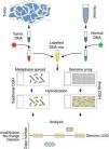 Comparative genomic hybridizationComparative genomic hybridization (CGH) is a cytogenetic assay that can detect losses and gains of genomic material and map them to specific chromosomes.124 CGH utilizes differential labeling of genomic DNA extracted from fresh or formalin-fixed tumor and normal tissue (usually peripheral blood leukocytes) with fluorochromes, followed by co-hybridization of equal amounts of each fraction on to metaphase spreads of chromosomes derived from a peripheral blood lymphocytes of a healthy donor (traditional CGH). DNA copy number changes can be determined by comparison of relative signal intensities of the different fluorochromes (Fig. 7). The main advantage of CGH is the ability to analyze the entire genome simultaneously and objectively, without specific probes. However, the utility of traditional CGH is restricted due to limited resolution of 3–10Mb.125 This can be overcome by utilizing an array of DNA targets covering the entire genome for hybridization (array CGH).126,127