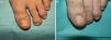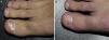 Distal and lateral subungual onychomycosis caused by T. Mentagrophytes. Before (A) and at 36 weeks (B) after treatment with 3 sessions at 1-week intervals of methyl aminolevulinate photodynamic therapy and 16% Aktilite (Photocure ASA, 37J/cm2). Prior to each PDT session the affected area was pretreated with 40% urea under occlusion for 5 consecutive nights.