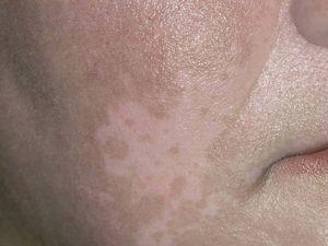 El vitíligo es una discromía adquirida frecuente que afecta del 1 al 2 % de la población, sin predilección por raza o sexo y que puede aparecer a cualquier edad. Se caracteriza clínicamente por máculas de color blanco-lechoso, que tienden a localizarse en áreas periorificiales, así como en codos, rodillas, axilas, pliegues inguinales y dorso de manos. La despigmentación se produce por la ausencia histológica y ultraestructural de los melanocitos. Entre las distintas hipótesis que tratan de explicar esta destrucción selectiva de los melanocitos, la teoría autoinmune es la que tiene mayor aceptación en la actualidad, ya que se ha demostrado la presencia de autoanticuerpos y células T citotóxicas dirigidas contra la superficie de estas células, así como la asociación de esta discromía con otras enfermedades autoinmunes 1 .