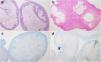 Case #1 was a woman in her 40s who presented with a 2-year history of periodically occurring vulval lesions. She reported the presence of pruritus and intense vulval pain. The physical examination revealed the presence of several translucent, coalescing papulovesicles on the two labia minora (Fig. 1). Condyloma acuminata was initially suspected, but acetowhite negativity signaled the need for a biopsy. The histopathological examination led to the diagnosis of LC (Fig. 2). Pelvic magnetic resonance imaging showed superficial bilateral tubulocystic structures on the vulva. No space occupying lesions on the draining lymphatics were identified. A single session of continuous-wave CO2 laser vaporization was performed, until all papulovesicles were gone. The patient will be followed-up at our center.