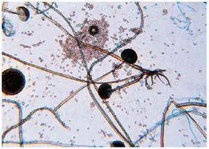 Fig. 3.--Agente etiológico identificado: Rhizopus oryzae (10×).