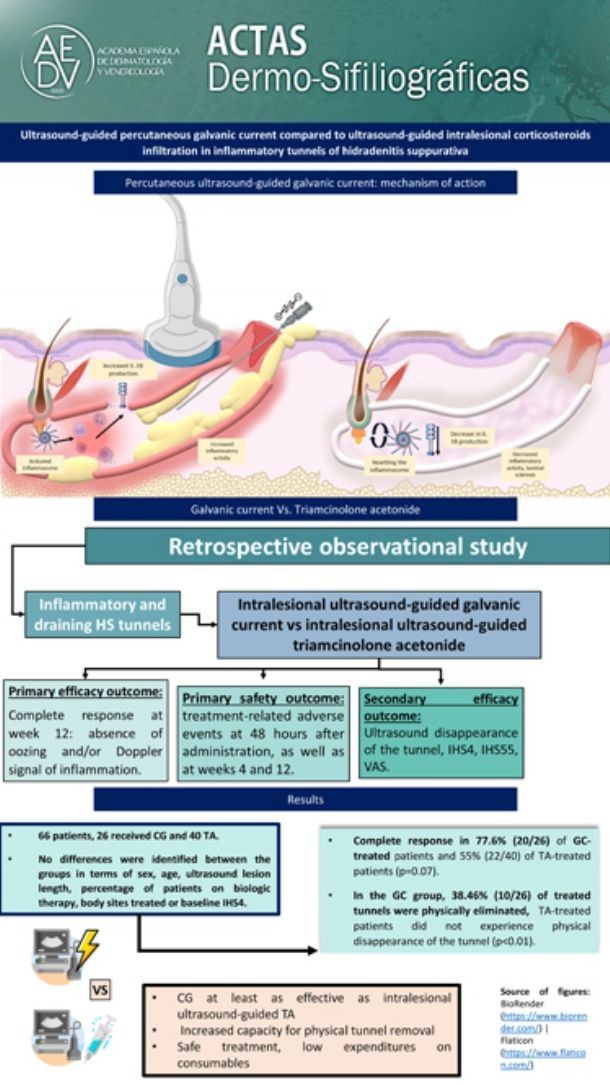 Ultrasound-guided Percutaneous Galvanic Current Compared to Ultrasound-guided Intralesional Corticosteroid Infiltration in Tunnels of Hidradenitis Suppurativa