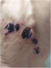 | Cuadro clínico | Ampollas tensas de contenido hemorrágico en miembros superiores y abdomen | Ampollas tensas de contenido hemorrágico en antebrazo derecho y vesículas en abdomen inferior | Ampollas tensas de contenido hemorrágico en pabellón auricular, dorso, miembros superiores e inferiores y mucosa oral(fig. 1) | Ampollas tensas de contenido hemorrágico en 4.o y 5.o dedos de mano izquierda | Ampollas tensas de contenido hemorrágico en piernas | Ampollas en cuero cabelludo, rostro, antebrazos y abdomen |