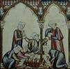 Alfonso's life was not easy, however, suffering as he did from various health problems. In addition to the aforementioned hydrops, for many years he endured a tumor or inflammatory process of the face that made eating difficult. In fact, a popular legend attributes the origin of Spanish tapas to the king's custom of taking wine and small amounts of food between meals. This condition, which may have been squamous cell carcinoma, chronic sinusitis, or lymphoma, led to fits of anger and pain (probably due to nerve involvement). One eye was said to bulge from its socket as a result, leading his son Sancho to sneer. Calling his father leprous and deranged, Sancho was probably motivated by politics given that the two were also clashing on the battlefield. The king's ailment cannot be inferred from the many illustrations of him in the Cantigas. The nature of art and the artistic canons of the period obliged the illustrators to present an idealized image of a king free of all defects.