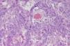 Histologically, sebaceous carcinoma can be well, moderately, or poorly differentiated. Tumor cells have hyperchromatic nuclei of variable shapes and sizes, with high mitotic activity and basaloid characteristics. Less well differentiated cells contain a lipid-rich eosinophilic cytoplasm, giving a foamy appearance.1,2 The presence of sebaceous differentiation can be shown by staining with Oil Red O or Sudan IV, or with immunohistochemical markers such as EMA and Leu-M1.1