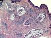 The differential diagnosis should be with long-standing melanocytic nevus, malignant blue nevus, and primary intradermal melanoma. Long-standing nevus appears as a nodular lesion on the face of patients older than 60 years. It contains small, monomorphic melanocytes exhibiting maturation, together with large solitary melanocytes with a hyperchromatic nucleus but no pleomorphism or mitosis. Occasionally, it is associated with degenerative signs such as thrombosis, hemorrhage, fibrosis, and sclerosis. Malignant blue nevus develops over a pre-existing blue nevus, it is easily distinguished in histopathology, and its prognosis is generally poor. Primary intradermal melanoma contains no nevus cells in histopathology and is a diagnosis of exclusion after primary disease has been ruled out at other levels.10