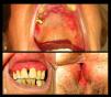 Clinical images. Erosions in hard palate (a) and erosive gingivitis (b) without lichenoid striae. Genital mucous erosions (c) with effacement of labia minora and synechiae.